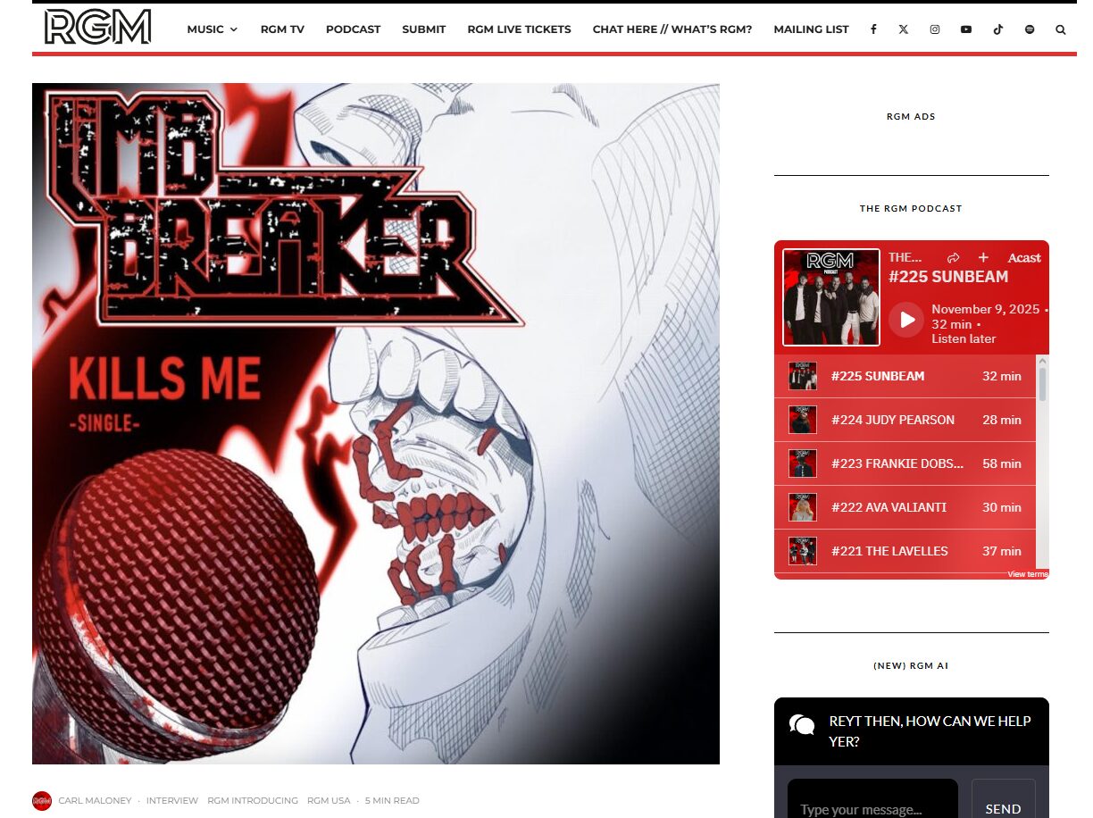 In Aug 2025, Limb Breaker released the single “N.A.G.A.S.”, an abrasive, layered track that bridges digital decay and human rage. The self-directed video quickly gained underground attention for its heavy sonic palette and visual intensity, earning features on local blogs and DIY playlists.